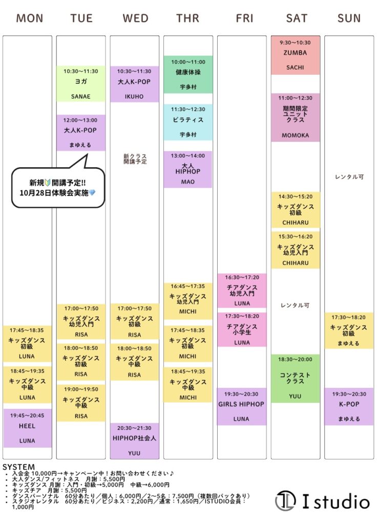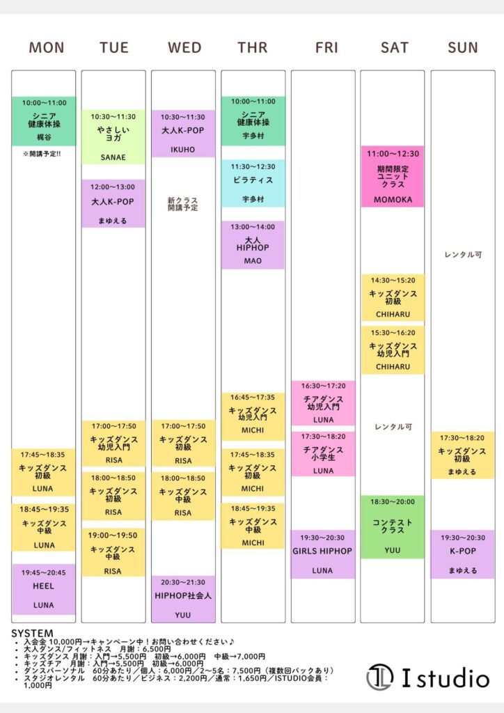 ご希望のクラスや曜日を決めて、I studio公式LINEへご連絡ください。体験レッスン時にお渡しする入会申込書をご記入いただき次回の参加日にお持ちください。
