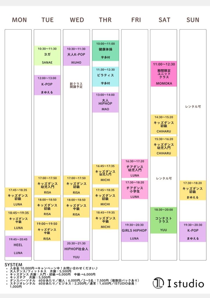 2・9・16・23・30日(9・16日→CHIHARU先生代講レッスン、30日→1/5分振替)